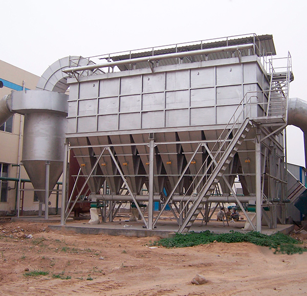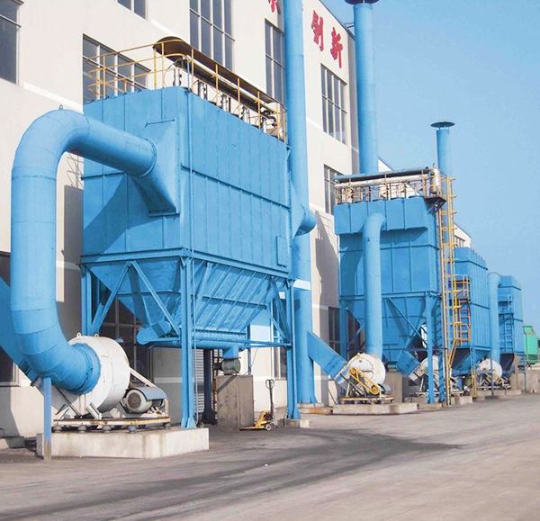 The process of flue gas containing dust from the dust inlet into the middle and lower body, the dust is adsorbed in the dust bag, the gas through the venturi tube into the bag after in the top box, discharged from the air outlet with the bag on the dust accumulation, bag pressure loss increases gradually, the pressure loss by the pressure gauge to feedback control instrument. Control device receives and sends instructions, according to the order of the trigger pulse electromagnetic valve, the gas of the gas ejected from the instantaneous blowing hole, in the Scripture's jet to the corresponding filter bag, the bag in the rapid expansion of the instantaneous reaction airflow, the product of shedding in the dust filter bag surface of the bag to get regeneration reuse.