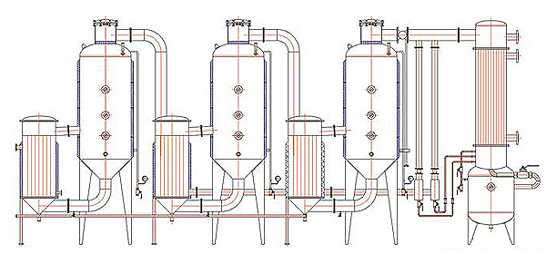 3、本濃縮器采用三效同時(shí)蒸發(fā),二次蒸汽得到反復(fù)利用,即節(jié)省了鍋爐的投資,又節(jié)約能源消耗,耗能與單效濃縮器相比降低70%,不到一年用戶(hù)可從節(jié)省費(fèi)用中收回本濃縮器的全部投資。