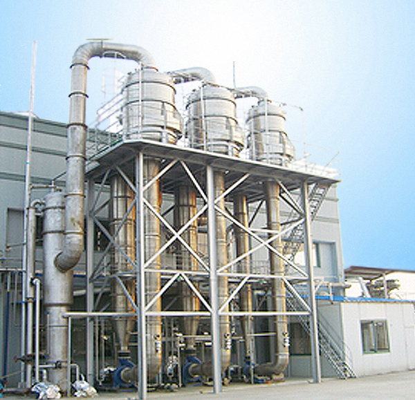 各效蒸發器、各效分離器、冷凝器、循環泵、效間泵、真空及排水系統、分汽缸、操作平臺、電器儀表控制柜及閥門、管路等系統組成。
